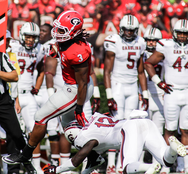 More often or not, when speaking about rivalry games, you get the popular UGA/FL, UGA/GATECH, and UGA/AUB games. I’ll elaborate on those a bit later. In recent years, South Carolina has become a thorn in the side of Mark Richt and the Georgia Bulldawgs. Having lost 3 out of the last 4 games played, UGA looks to redeem themselves in Columbia, SC. Steve Spurrier isn’t going to lay down and has a battle-tested history playing against Georgia, both as head coach at South Carolina and at Florida. Both teams will be very emotional and physical. Carolina will have to replace it’s 1st round NFL Draft Pick DE Jadeveon Clowney with someone who can place fear in an offensive line. Both teams face opening games against ranked opponents, so it’ll be interesting to see where they each stand come game day. I anticipate a low-scoring affair with Georgia coming out on top.