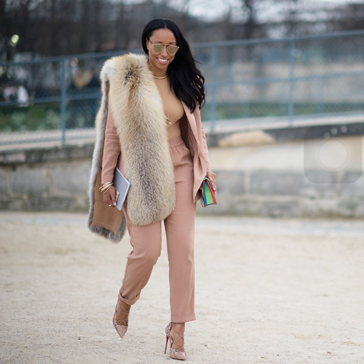 There’s something about a nude pallet that adds chicness to a winter wardrobe. Add a couple key nude pieces to your closet and watch how easily these pieces transition from outfit to outfit. If you’re trying to make a real statement do a full nude outfit like the one below, accessorize it with a faux fur scar to really warm it up.