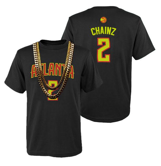 The team is also releasing a retail item to commemorate 2Chainz’s appearance. An updated 2016-17 version of one of the best-selling pieces in the history of Hawks Shop – a team-colored t-shirt featuring the rapper’s noted two-necklace look – is available via presale starting today at HawksShop.com.
