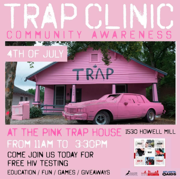 2 Chainz turned his wildly popular Pink Trap House installation in Atlanta into a temporary site for free HIV testing Tuesday. Chainz, the Fulton County Board of Health, Test Atlanta, and Atlanta Aids partnered for the Trap Clinic on Independence Day, offering free tests between 11 a.m. and 3:30 p.m. local time.