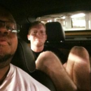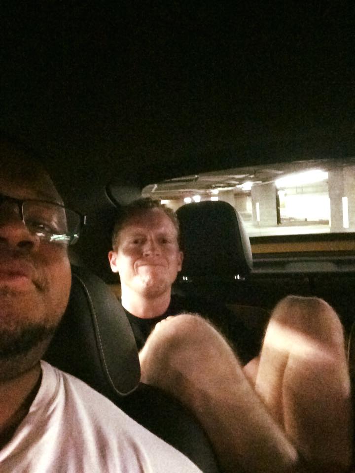 Self-explanatory. The VW Beetle is, and has always been, a coupe, with ample room for two up front and two in back, provided the latter pair are children who don’t mind having their little knees squished. Here I am with my friend James, who’s also 6’3″, testing the backseat of the Beetle.