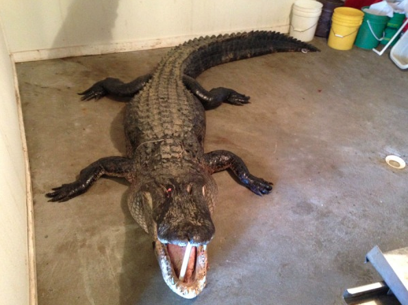 A massive alligator was caught and killed at Lake Blackshear Wednesday night, and the guys that helped bring it in are quite proud.