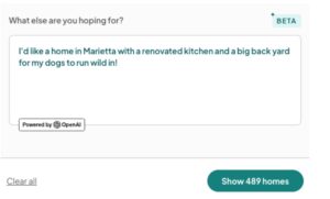 Let’s say you’re moving from NYC, looking for a new home in Marietta. You might start with the size or the price or a general area, but that still means you’ve got to sift through about 1600+ listings in Cobb County to find the few you really want. By leveraging the new functionality of OpenAI’s ChatGPT and some clever engineering, Tomo now makes it possible to search for things that really matter to you, like a high-end kitchen or a large back yard. You can even drop a little emoji if there’s something you’re really hoping for—like a saltwater pool or a roof deck