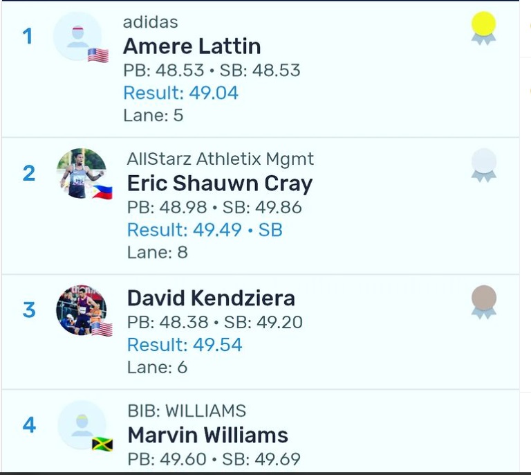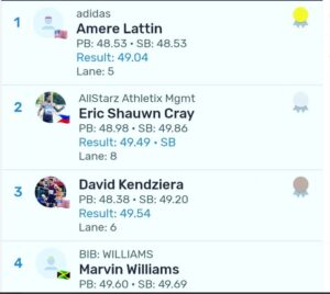 American Amere Lattin won the men’s 400m hurdles in 49.04 secs.
