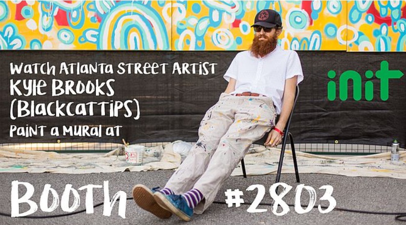 Also see… Kyle Brooks (BlacCatTips), Atlanta street artist, create a mural inside the INIT booth.