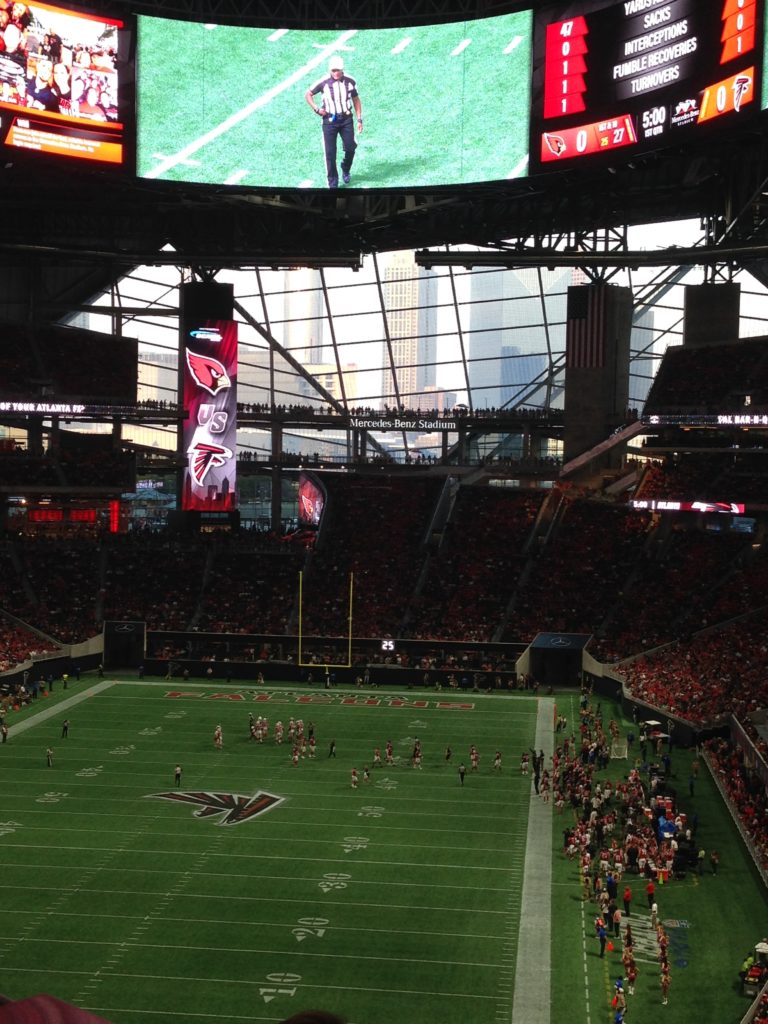 The halo video board beneath the roof is a ridiculous 63,800 square feet, an improvement from the 4,800 square feet of video screens in the former Georgia Dome.