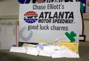 Elliott, Georgia native and driver of the No. 9 Chevrolet Camaro ZL1 for Hendrick Motorsports in the Monster Energy NASCAR Cup Series, visited Atlanta Motor Speedway, his home track on the NASCAR circuit, this week for a special media day and presentation of good-luck charms sent in from fans across the country as part of the recent “Good Luck, Chase” promotion put together by AMS.