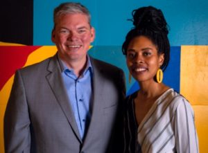 John Dwyer, President of AT&T’s Prepaid Portfolio division joined Neka King, Artist and Muralist from Atlanta for the unveiling of the new mural, The Story Teller at Mercedes-Benz Stadium for a ceremony on Thursday.