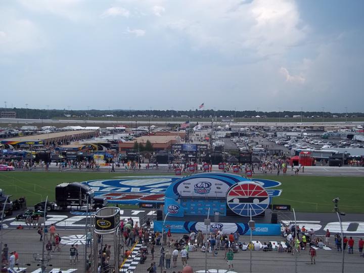 Okay, I know Toyota is Japanese and they are one of NASCAR’s car manufacturers nowadays, but trust me, every car on the track is 100% made in America. And you cannot believe how fast and loud these things are. 200 miles per hour and louder than a jet engine can’t convey the feeling to you; watching a NASCAR race is breathtaking, mind-bending, utterly consuming. You can’t think or talk when the race starts because your mind has been melted by the awesome speed and sounds. The best part is that Atlanta is a non-restrictor plate race, which is getting a little technical, but basically it means that the cars are able to go full speed around the track. If you watched the Daytona 500 last week, you may have noticed that the cars were all bunched up for most of the race. Not so in Atlanta – the cars string out around the length of the track, the slower cars are constantly lapped by the leaders and anything can happen as the best and the worst of the race constantly intermesh with one another. Atlanta is actually known as one of the fastest tracks in NASCAR, so you’re seeing something special.