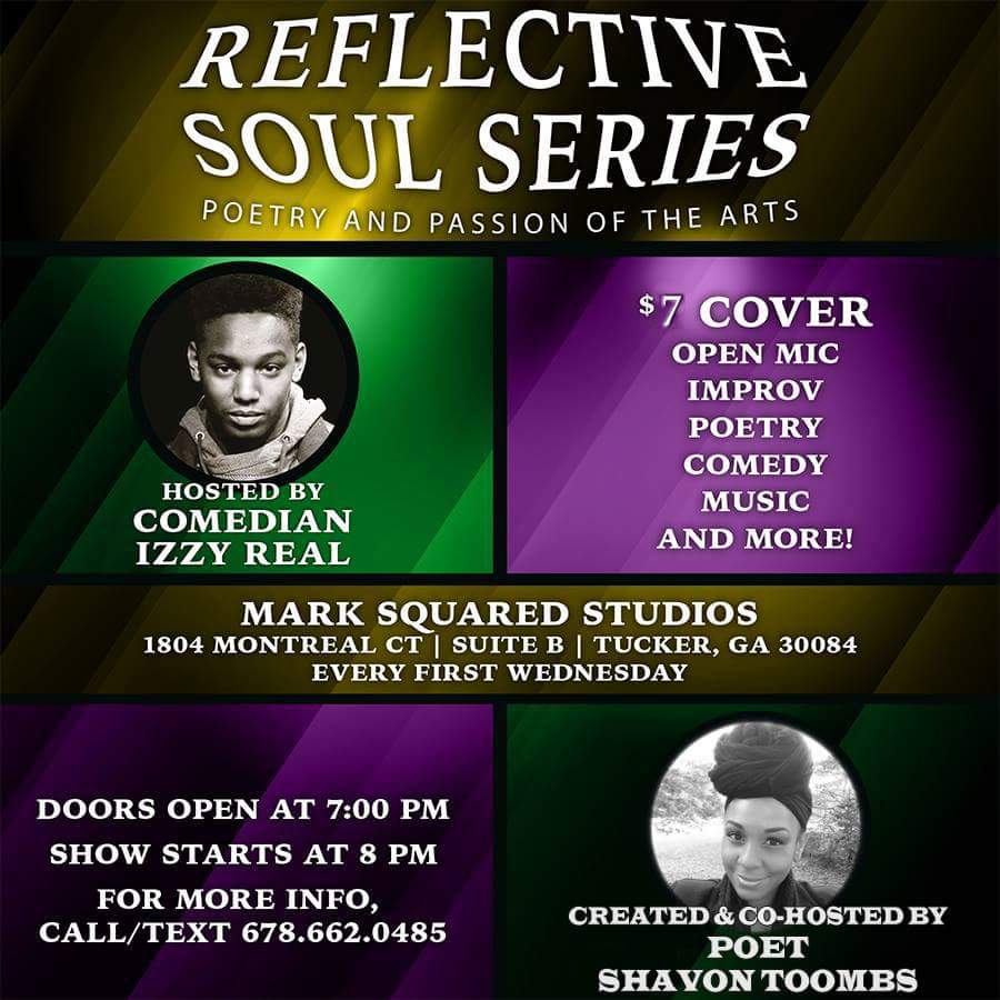 This open mic is hosted every 1st Wednesday of the month at 1804 Montreal Ct, Ste B, Tucker, GA 30084 Mark Squared Studios. This monthly open mic was created by myself and is hosted by spoken word artist Yo’ Sista and Comedian Izzyreal. The location of this open mic is unique because it is at an event space. Since this open mic is at an event space, you will see different a theme and scenery each month. This is the only open mic in Atlanta that offers free food, free parking, and great entertainment for only $7. The atmosphere at this open mic is very fun, friendly, personable, and bubbly! If you’re in the mood for poetry, live music, comedy, and improv then Reflective Soul Series open mic is for you! Doors open at 7PM and the show starts at 8PM. Make sure you arrive before 7:45PM to sign up on the open mic list.