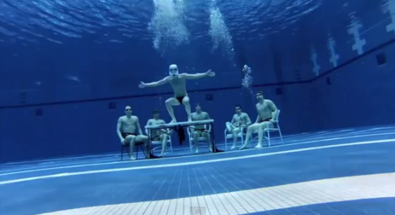 The real strength of this video is in the details: the props and costuming are great. Is that a Stormtrooper? Is that a bicycle at the bottom of the pool? Is that guy really wrapped in a sleeping bag ten feet below the surface? Check, check & check.
