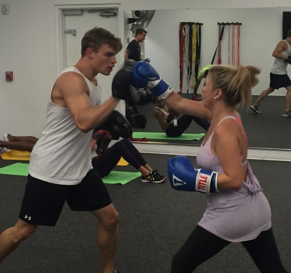 Matt’s session offers a great full body workout and you learn what it really takes to throw a punch. After light cardio – running up flights of stairs to access the rooftop, jump roping, and a cool down stretch – Matt demonstrates different punching combinations to practice. Boxing requires coordination, moving your hands and feet while exerting energy from your base through your core. Stepping with each punch feels a bit weird at first, but with practice, you’ll find your rhythm.