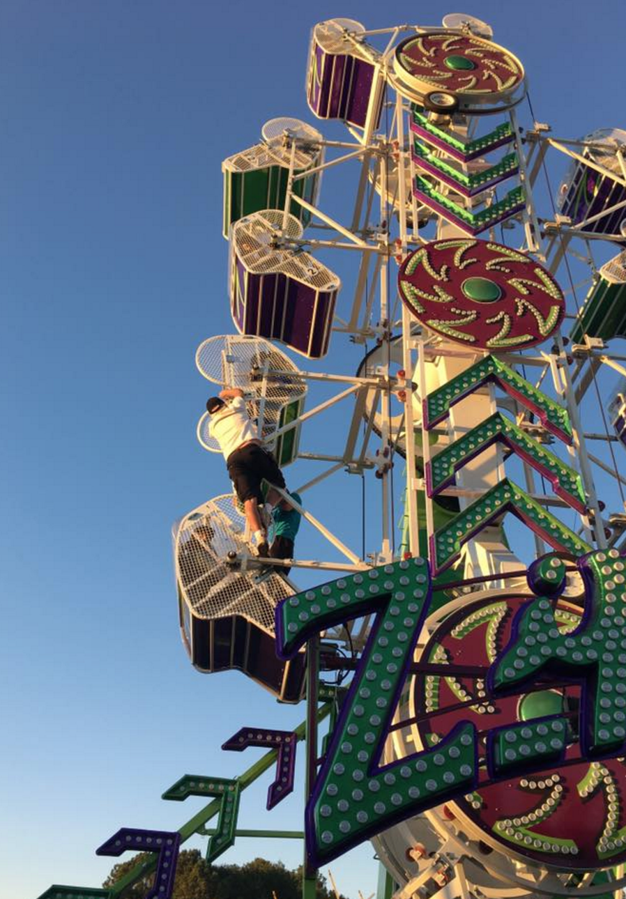 Brayden Cooper, 13, and his cousin Gracie, 10, were on a ride called the “Zipper” when their door flung open, and Brayden’s harness released. The young boy held on to the harness for his life, dangling nearly 30 to 40 ft. above the ground. Gracie’s harness did not release, however, with the door open, she hung upside down facing the ground until the ride was lowered. Brayden was very brave, and hung on safely until the cart below him settled and he was able to use his feet to balance.