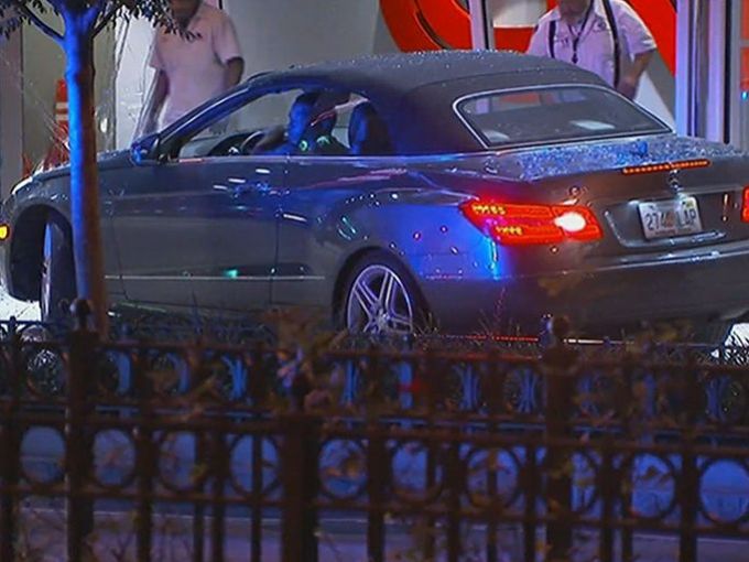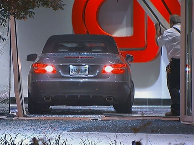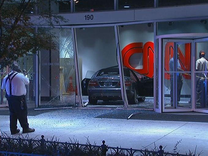 Authorities say the Mercedes Benz shattered the glass entryway on the building’s north side around 4:15 a.m. Friday. It came to rest in the middle of the lobby, several yards away from any of CNN’s offices.