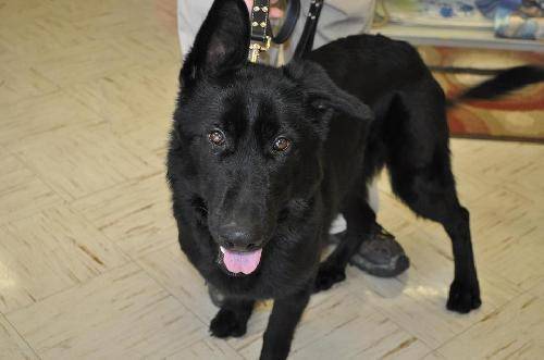 Her name is Sunny and her disposition follows the name despite the dark days she has experienced in her short life. The black lab is between six and eight months old.