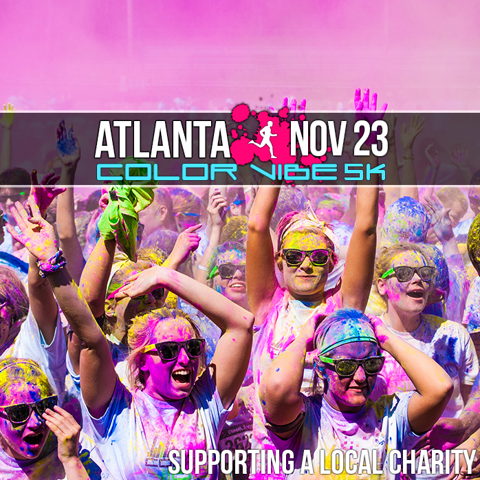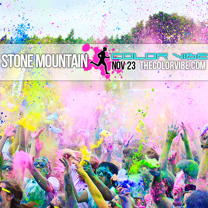 Get ready Georgia! The Color Vibe is coming to Stone Mountain, November 23rd! The Color Vibe is a color blast 5K run that is all about having fun and getting covered from top to toe with splashes of color pandemonium. At the Color Vibe 5k run, YOU are the color canvas. When you’re finish the race, you, your friends and other runners have a dance party & color throw! Don’t worry, the Looking for something different and healthy to do this holiday season? The Color Vibe is your new home. Find out more info and register here