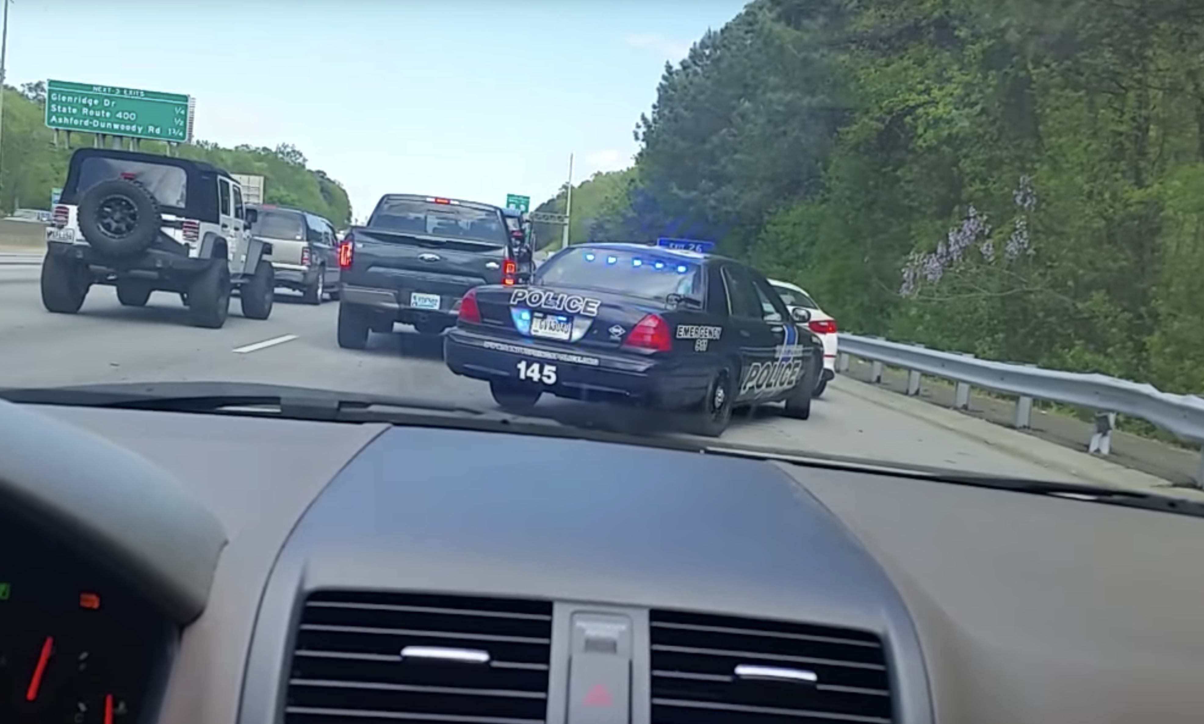 Matt Bentkowski caught the moment a car tried to cut through traffic and within seconds was caught by the police. The cops didn’t waste any time pulling over the white vehicle and making it known that they are in deep trouble.