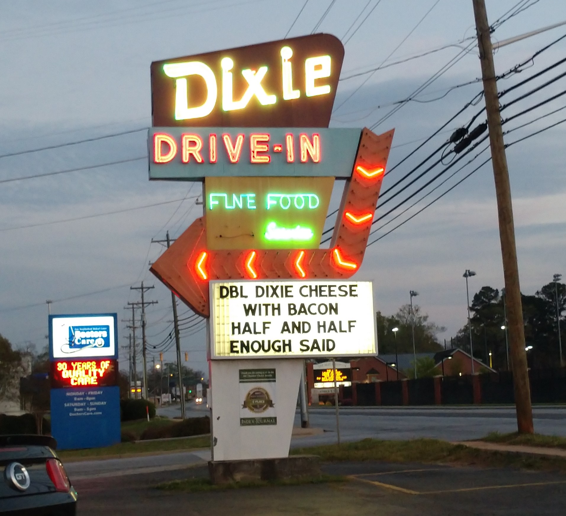 Dixie Drive In – 600 Montague Ave, Greenwood. A throwback to a drivein/diner where hamburgers and fries rule the roost. Come in and take a seat and eat.