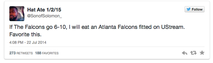 Back in July, one Falcons fan believed the thought of his team going 6-10 was so crazy that he said that he would eat his hat if it happened: