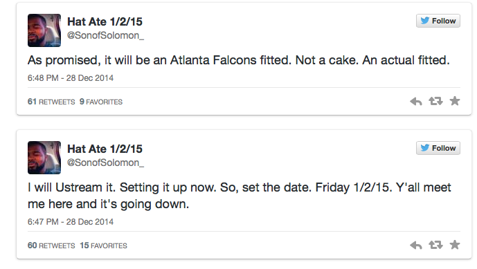 True to his word, the fan made plans to eat his hat live on his webcam: