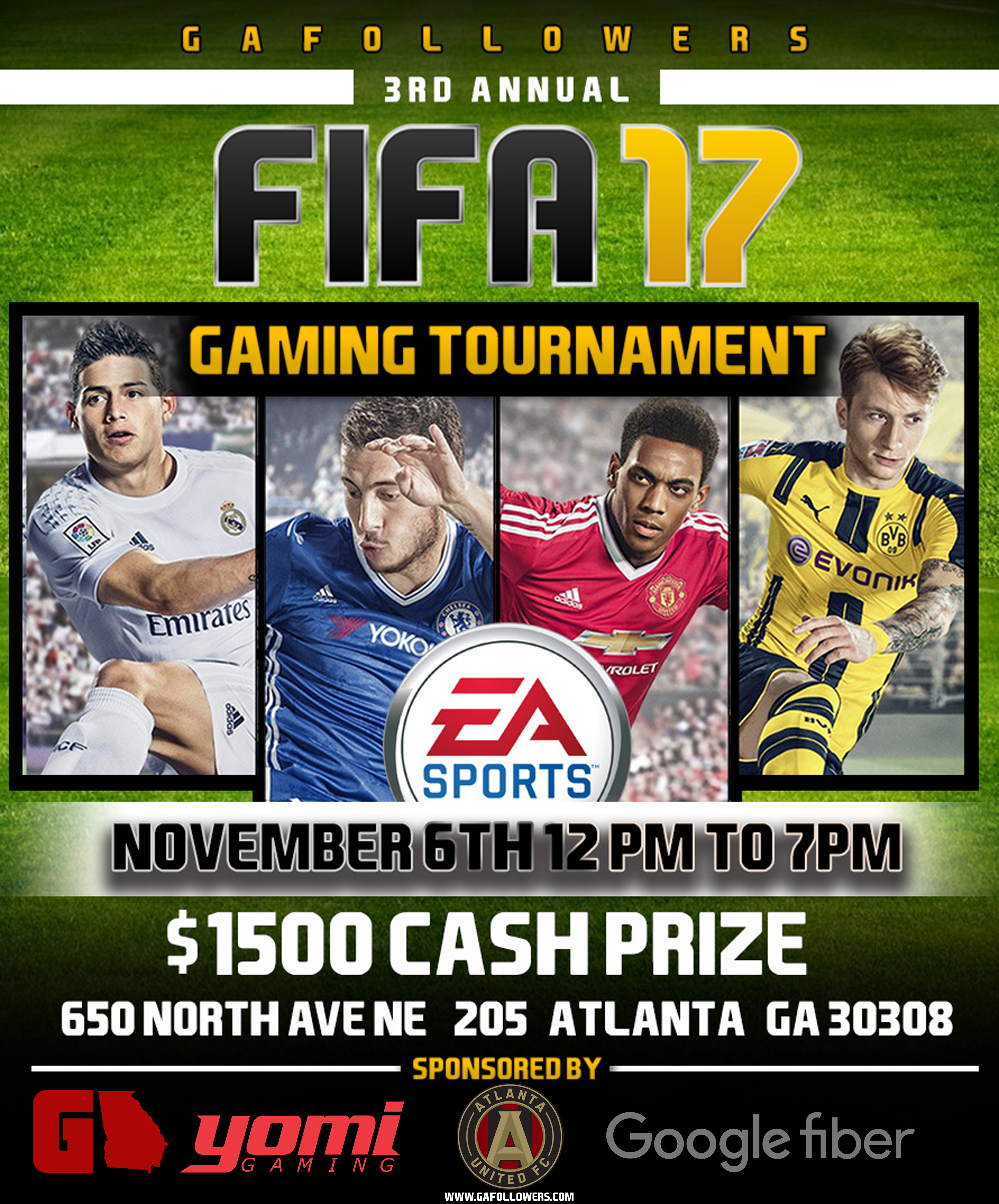Do you have what it takes to win $1,500? We’ve teamed up with Atlanta United FC and Google Fiber to host our 3rd annual FIFA tournament this November! Come prove that you’re the BEST FIFA 17 player in the state of Georgia!