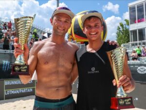 The men’s title went to the sixth-seeded duo of Paul Lotman and Miles Partain, whose 17-21, 21-14, 15-9 victory against top-seeded Theo Brunner and Chaim Schalk in the title match capped an undefeated tournament. Lotman and Partain twice upset third-seeded Phil Dalhausser – a 2008 Olympic gold medalist – and fellow Olympian Casey Patterson.