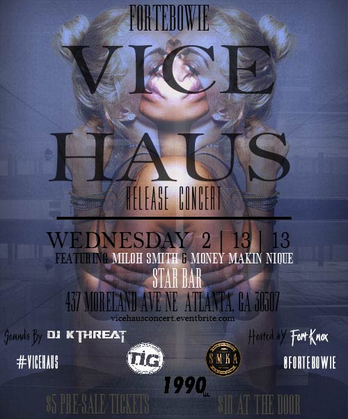 Come out to the official release concert for ForteBowie’s Vice Haus EP! Performing LIVE ForteBowie w/Money Makin Nique & Miloh Smith!!!