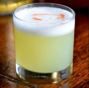 “Pisco is a brandy,” explains Arnold. “It’s Pisco, lime juice, sugar or sweetener and an egg white. Margarita fans will love it. It’s strong, sweet, but sour and has some bite.”