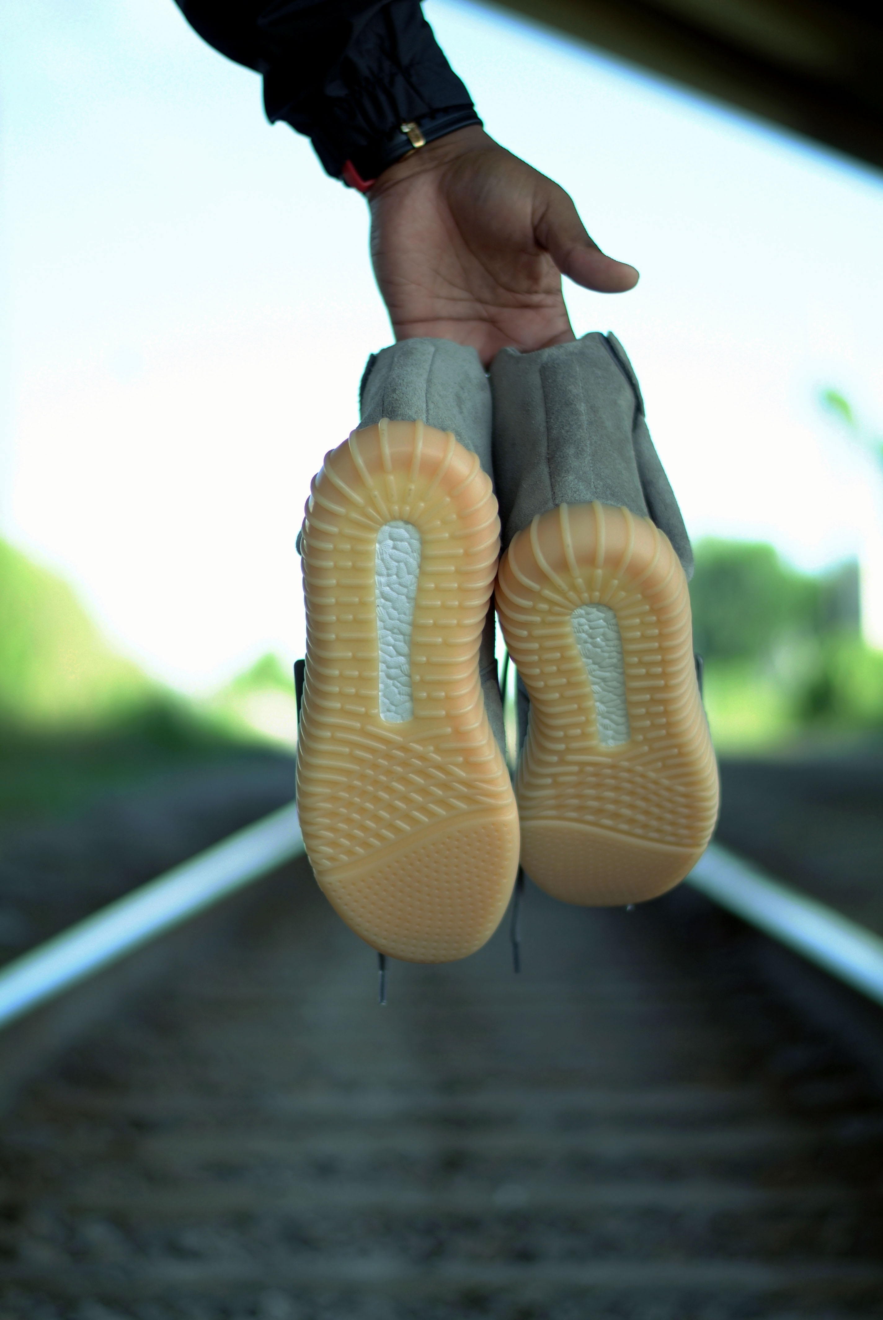 The Adidas Yeezy Boost 750 “Light Grey/Gum” is constructed to be an affordable luxury shoe. After thoroughly examining it, this fact is undeniable. It features a premium suede upper that is extremely soft to the touch, a premium leather heel lining and the pillow soft cushion/springy responsiveness of Adidas’ trademark Boost technology. As you can see, the shoe is built for comfort and that comfort translates well when you put them on foot (we’ll get to that in a bit).