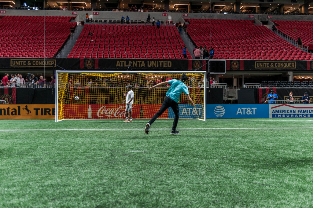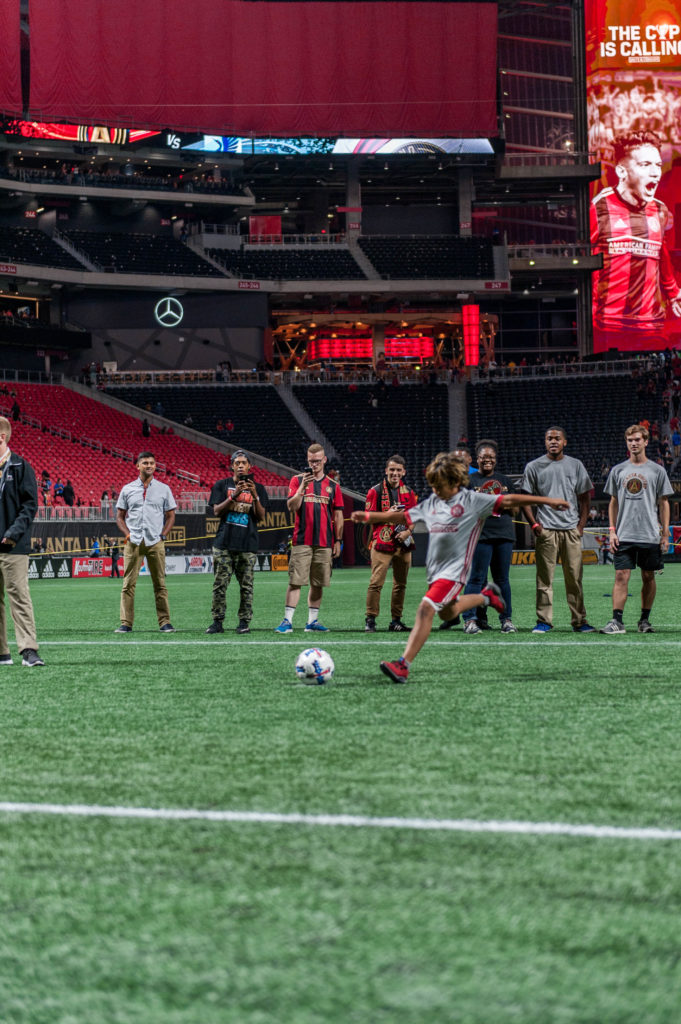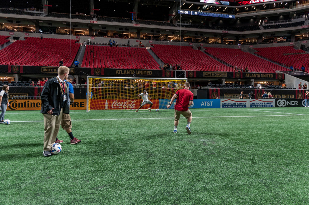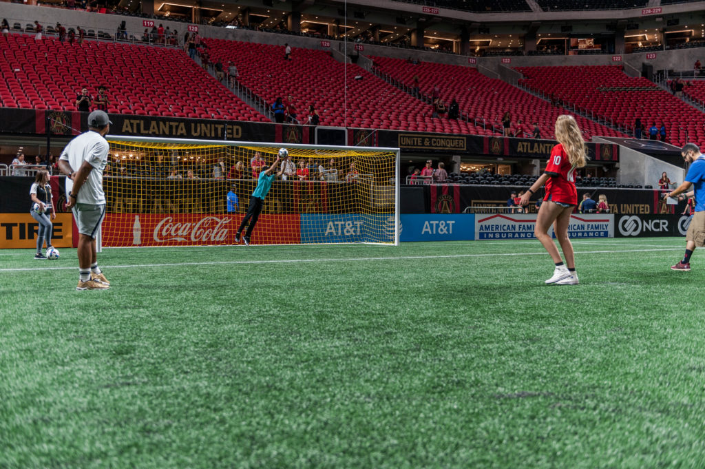 Participants got the firsthand experience of stepping onto the pitch, at the world class Mercedes-Benz stadium, and kicking a penalty kick against us! Now, we’re nowhere close to being professional goalkeepers, but that didn’t stop our pride from being on the line. Many goals were scored/blocked/missed, but smiles were plentiful and lasting memories made.
