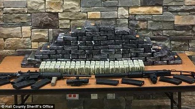 It was there that police found 61 kilograms of cocaine, one kilogram of heroin – worth $6.2million – and two semi-automatic assault rifles, the Atlanta Journal Constitution reports.