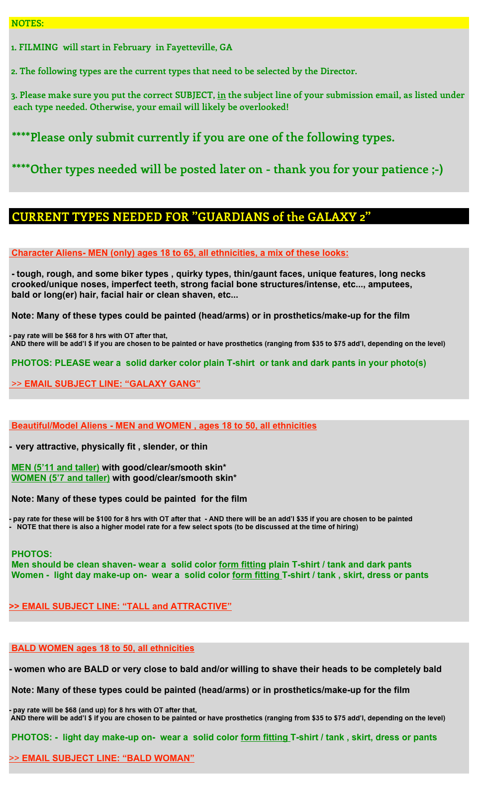 Guardians of the Galaxy Vol. 2 will follow in the successful footsteps of this past summer’s Ant-Man and film in metro Atlanta (Pinewood Studios). Production on the Guardians of the Galaxy sequel is gearing up and you know what that means…casting calls! Casting lady extraordinaire, Tammy Smith, has released a new call for the film. Find out how to be apart of 2017’s highly anticipated Guardians of the Galaxy Vol 2 below!
