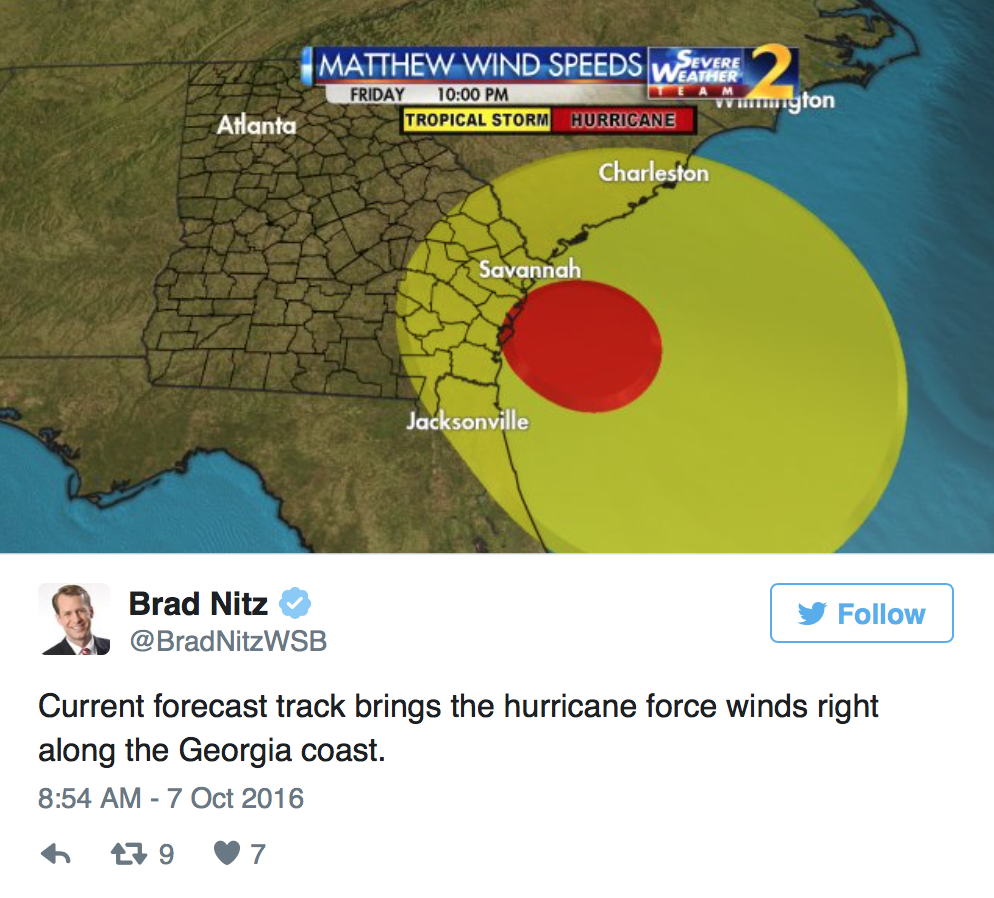 Several predictions are putting Savannah and St. Mary’s residents on high alert as they are expected to get the worst of what Matthew has to bring to Georgia.