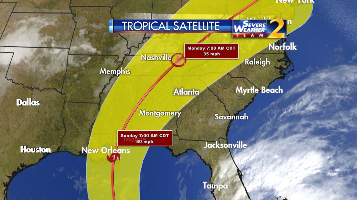 Updated forecast track for Tropical Storm Nate brings the center NW of Atlanta, but we're still in the threat cone. pic.twitter.com/20VsOAuDz4