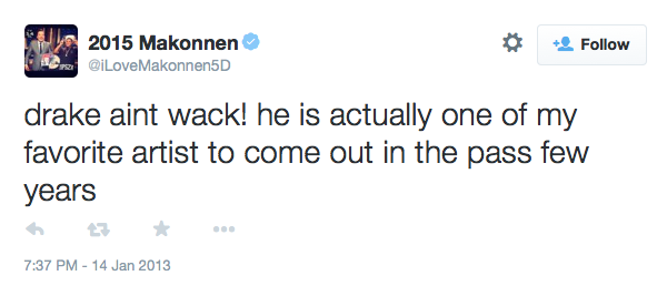 As I always say, every man contradicts themselves at some point within a lifetime and that’s ok. Here rapper/singer “ILoveMakonnen” mostly known for his hit record with Drake, “Tuesday” (produced by Sonny Digital) had a few ambivalent tweets shoveled up from the past. Below you can read that initially Makonnen did not enjoy Drake’s musical contribution to the world, over time Drake grew on him. This is meaningful because Drake gave Makonnen his prominence into the “rap game” by jumping on the remix to his song “Tuesday”. We see this all the time though…….here are more rappers that magically lost their hate for another artist.