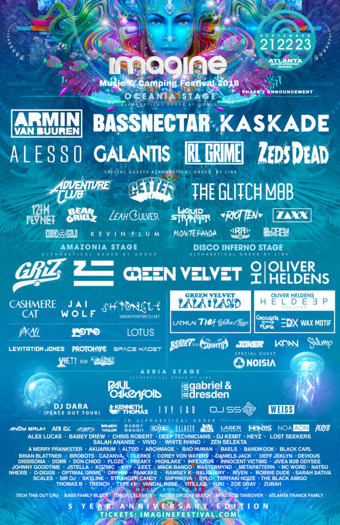 Imagine Music Fest is returning for its 5th anniversary at the Atlanta Motor Speedway and we’re just days away from the family reunion! September 21st through the 23rd is bringing to life fantasy, art, music, and beauty in Georgia. Imagine is one of the largest growing festivals having hosted about 90,000 attendees in 2017 and is expecting more this year. It is also one of the country’s last remaining independent festivals, Imagine is not only hosting some of the hottest artists to date but is an experience of a lifetime you shouldn’t miss out on! The festival blends music, dancers, circus troupes, a ton of workshops, art, classes and so much more and is located on 887 acres that fully supports the rapidly growing fest.
