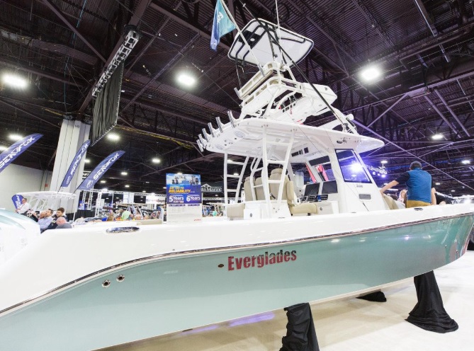 New! Queen of the Show: Bringing royalty to the water is this year’s largest boat, making the Everglades 435cc Center Console the 2020 Queen of the Show! At 43 feet, this ultimate fishing vessel includes a luxurious cabin with plush seating, fully equipped head with standing shower as well as a full bait-prep workstation, including 10 tackle drawers, 300+ gallons of fish boxes and more!