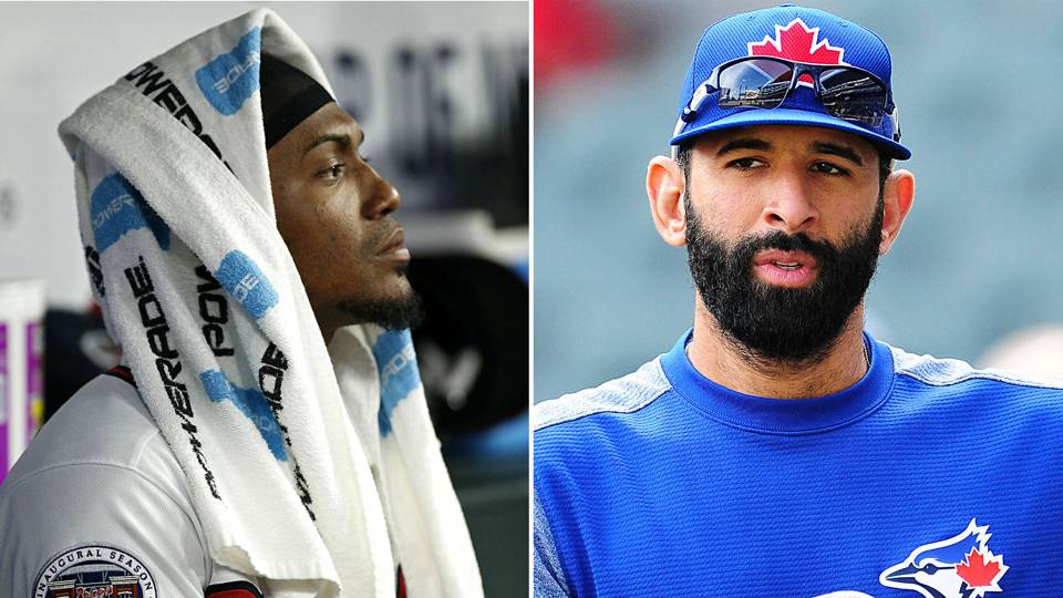Braves pitcher Julio Teheran hits Jose Bautista in the knee a day after Bautista’s Bat Flip clears the benches. pic.twitter.com/PUuQg3Vs63
