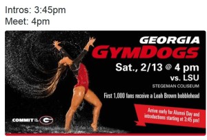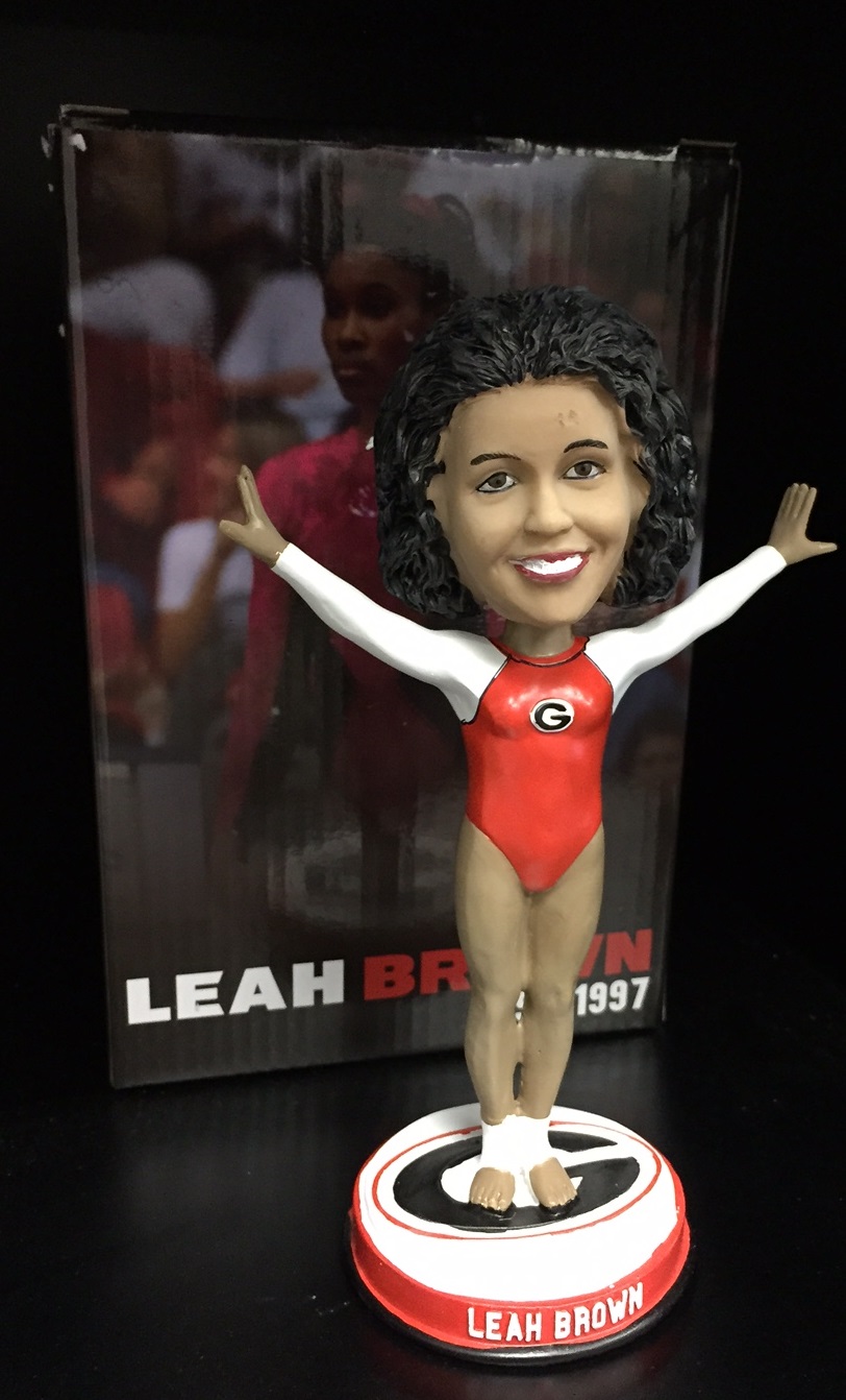 Be one of the first 1,000 fans in the door for the Saturday, February 13, University of Georgia vs. LSU women’s gymnastics meet and you will be one of the lucky fans to receive a free Leah Brown bobblehead. It’s all part of a conscious effort by the University of Georgia Athletic Association to honor UGA athletes, reward loyal Bulldog fans and do a little something special to promote UGA Athletics.