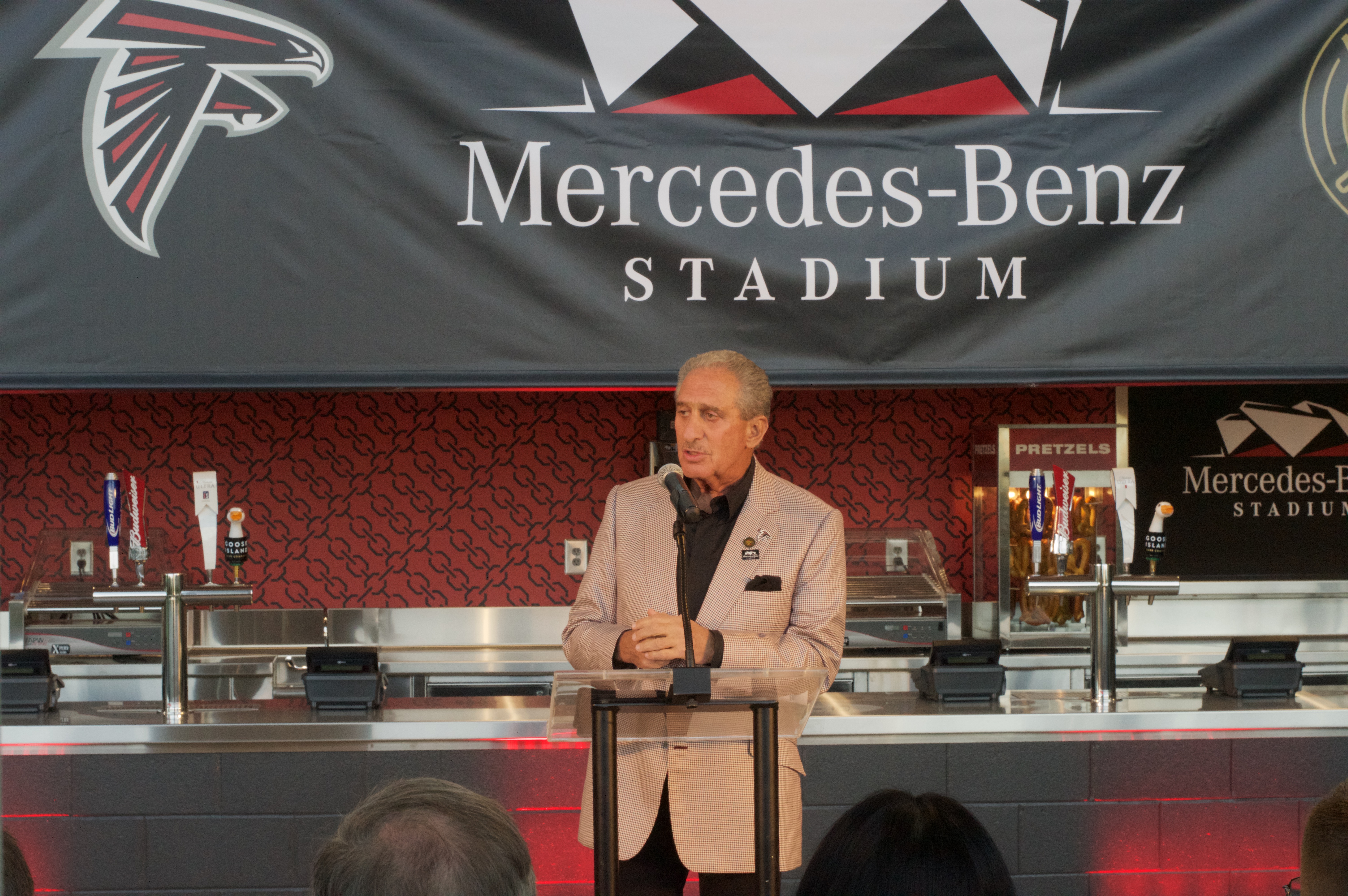 Today, May 16th, during an exclusive press conference at the construction site of the Mercedes Benz Stadium, Arthur Blank got a sneak preview of his suite and addressed revolutionizing the guest experience. “We believe one of our core values is listening and responding…and I think what you’ll see today is long term response to food and beverage. Variety and value in pricing that will make it easy for a family.”