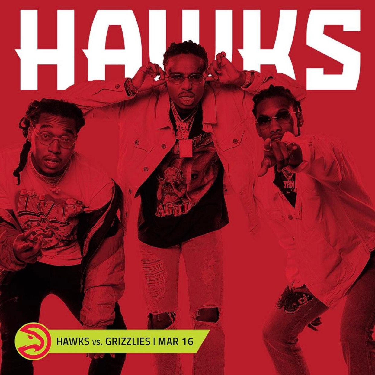 Migos will be the fourth act to perform at a Hawks game this season, joining Atlanta-based superstars 2Chainz, Gucci Mane and Lil Yachty. Since the beginning of the 2014-15 season, the club has enlisted T.I., Ludacris, Jeezy, Cee-Lo and more to add to the Philips Arena in-game experience.
