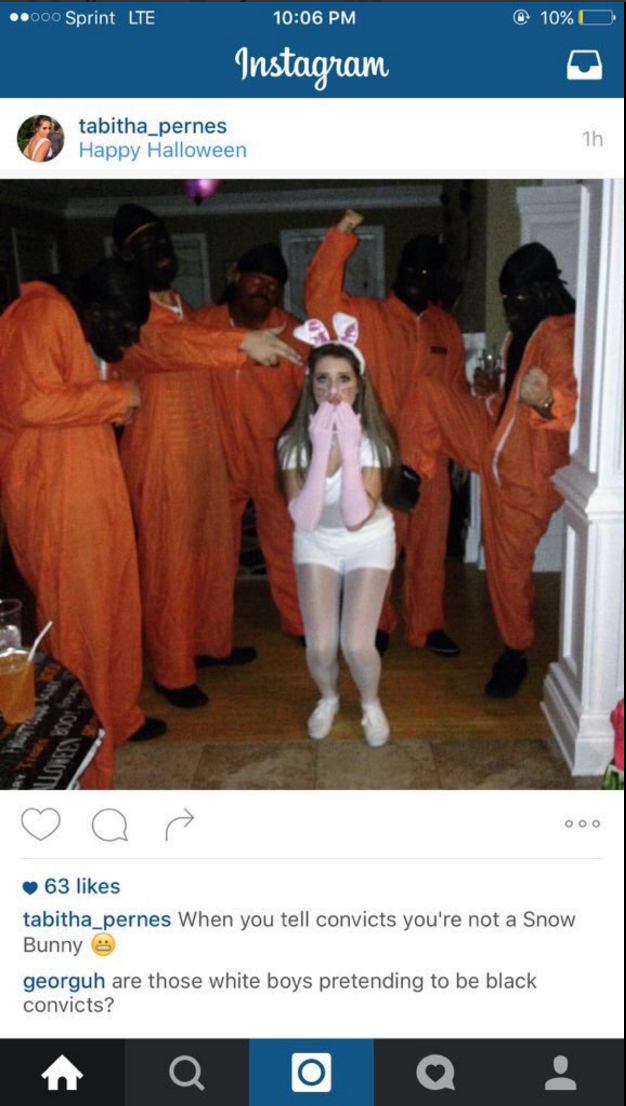 Despite all the efforts attempting to curb the number of offensive and racist costumes out there, such as retailers pulling costumes from shelves and various media outlets speaking out against this awful trend, we still came across one of the worst of the bunch from this Halloween weekend. A group of white teenage boys from Mill Creek High School actually thought it was a good idea to dress up as “black convicts,” as documented by a friend who shared a photo of their costumes to Instagram.