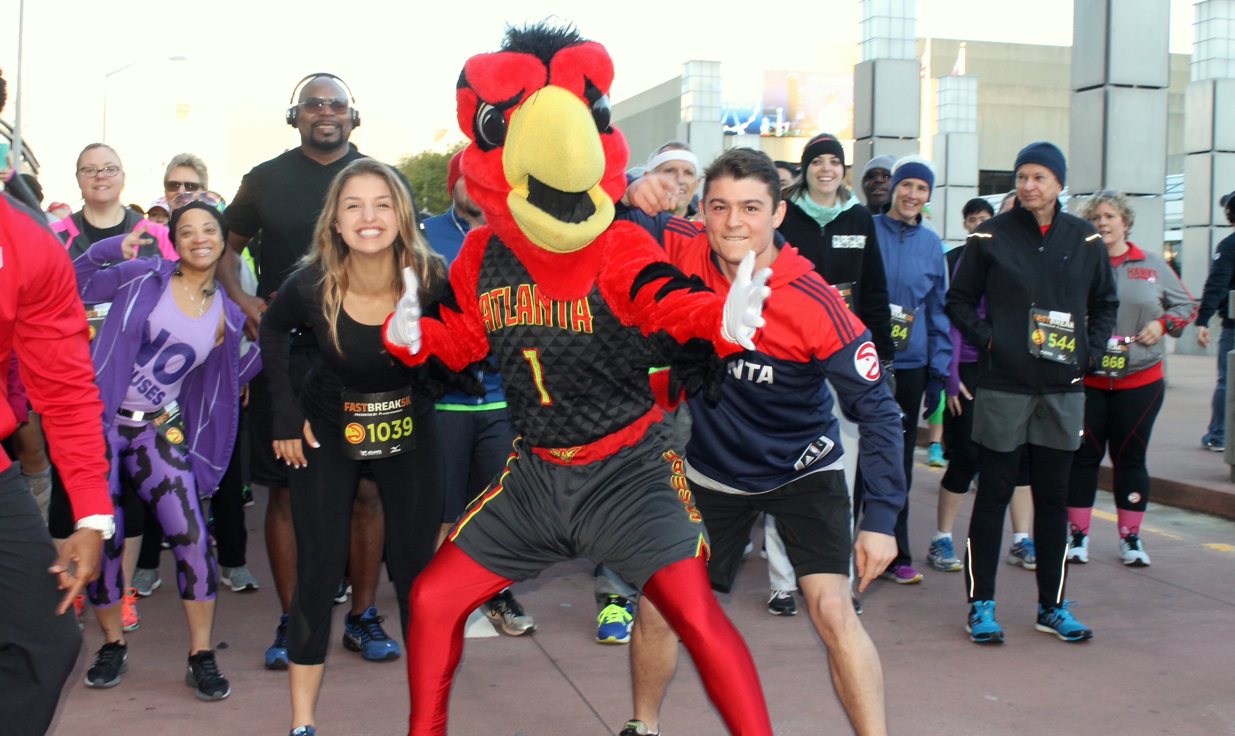 Ronnel Blackmon MC’s for the Atlanta Track Club races and kept the energy high throughout the event. The Hawks’ cheerleaders also contributed to the fun atmosphere, even dabbing at one point, and one of Atlanta’s favorite mascot’s Harry the Hawk entertained with his usual antics. The only disappointment is having to wait until next year to do it again!