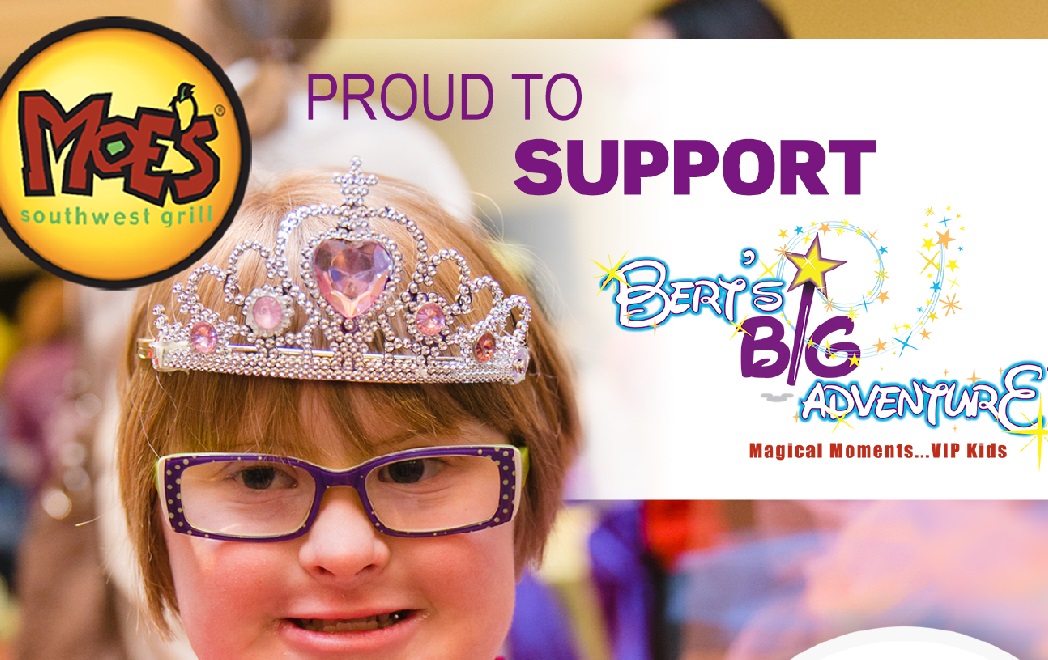Moe’s Southwest Grill® welcomes Atlantans to their more than 70 locations across the metro area as they proudly support Bert’s Big Adventure in the month of June! The Atlanta locations of the fast-casual southwestern restaurant are donating 10 percent of their net sales on June 1st, 8th,15th and 22nd to Bert’s Big Adventure®, a nonprofit organization that provides a magical, all-expenses-paid, five-day journey to Walt Disney World® for children with chronic and terminal illnesses and their families.