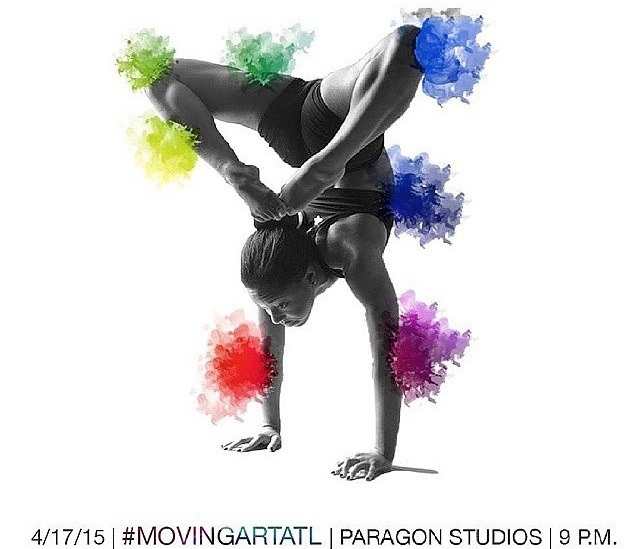 Upon arriving to Paragon 7 Studio in Atlanta this past Friday, the place Moving Art ATL was being held, I was impressed by the amount of artists being featured. Each artist was encouraged to bring original pieces of their own to display throughout the gallery. They were also assigned one model to use as a canvas, which was also skilled in the art of yoga. Once all artists were completed with their walking works of art the real show began. First up were two that performed a sort of acrobatic yoga, where a male yogi used balance and strength to hold up a female yogi who equally demonstrated those qualities.