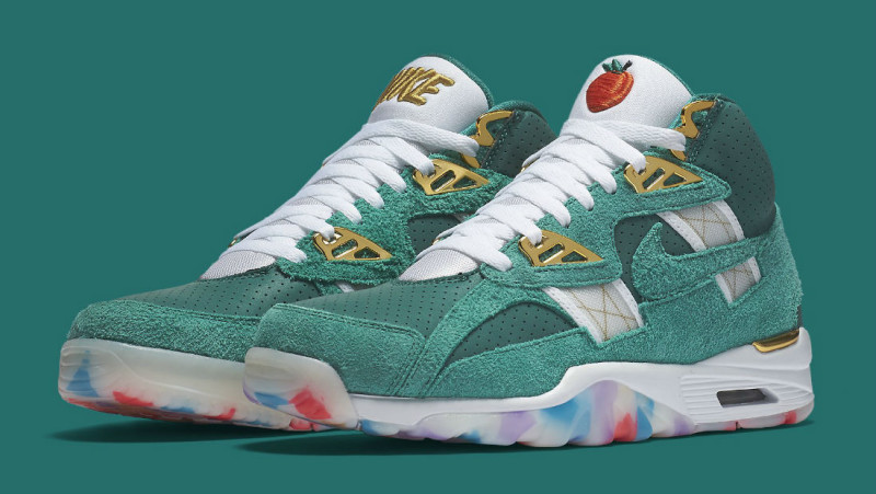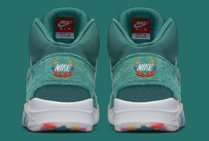 The trainer sits atop a translucent sole speckled with colors from the vintage emblem and contains glow-in-the-dark features for an overall ceremonial vibe. This version of the Air Trainer SC High is expected to hit stores on July 19.