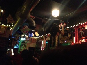 Stop #3 is always my favorite. CHURCH has a great story about a theologist turned artist/bar owner, and the overall weirdness of the bar adds to its charm. The bar itself serves the usual fare, but it has a sangria that’s the “Spiritual Sangria,” otherwise known as the “Blood of Christ.” It comes with fruit chunks so big that you need both a straw and a spoon. Like Mother, CHURCH is two stories in order to house their church organ karaoke, ping pong tables and other games. Also, where else are they going to store the myriad of appropriately inappropriate decorations? Peace be with you, and also with you.