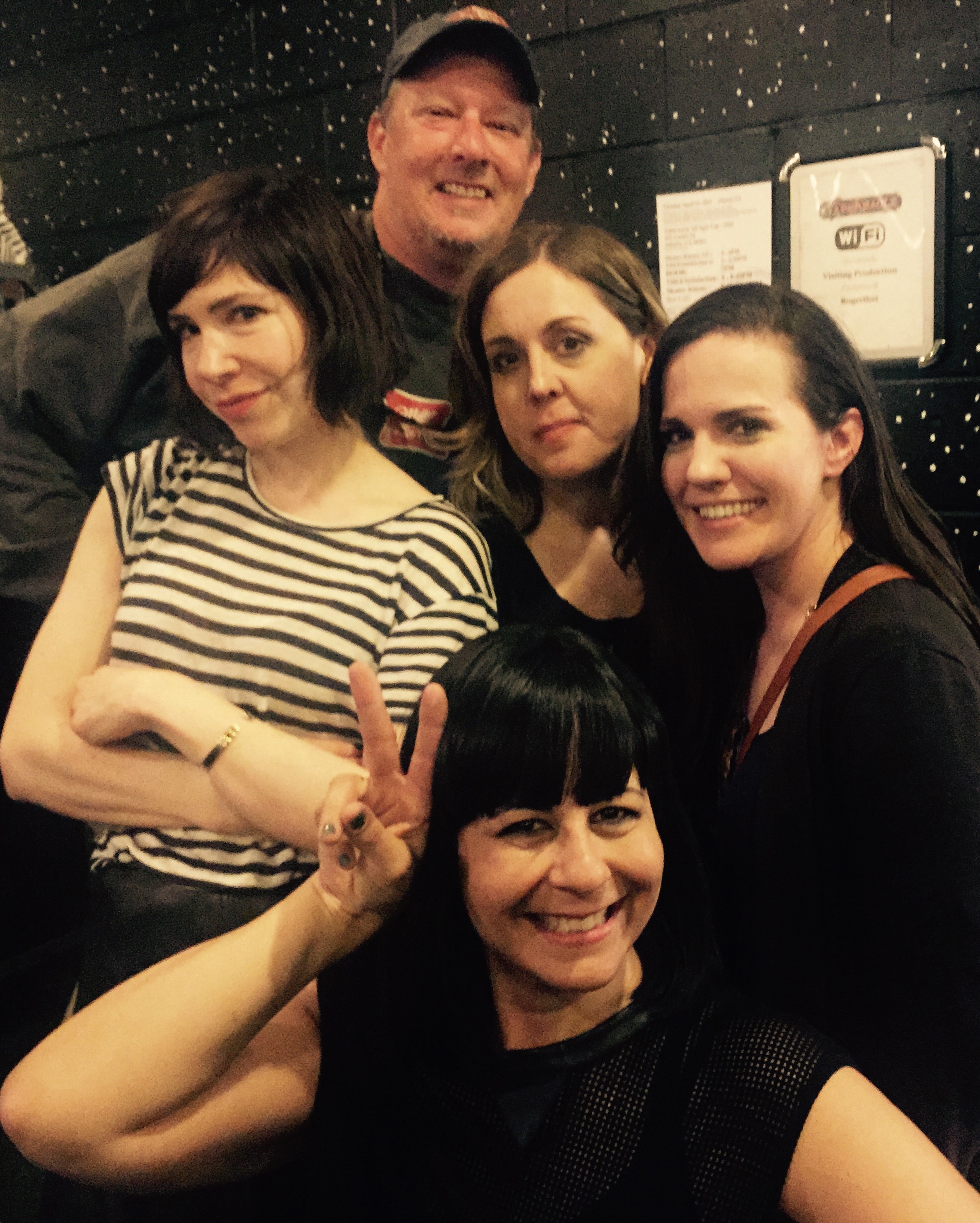 After the show Alison and I found our way through the hallways that feel like tunnels leading to the backstage area and hooked up with Janet and company. When we entered the room, Corin Tucker immediately got us drinks, we were introduced to Carrie Brownstein, who is now more famous for her hit IFC show, Portlandia, as well as her American Express commercial, than she is for being in one of the coolest bands on the planet. I’m not going to say I was star struck, but it’s not every day I get to hang out with a TV star, and it was shaping up to be an amazing night.