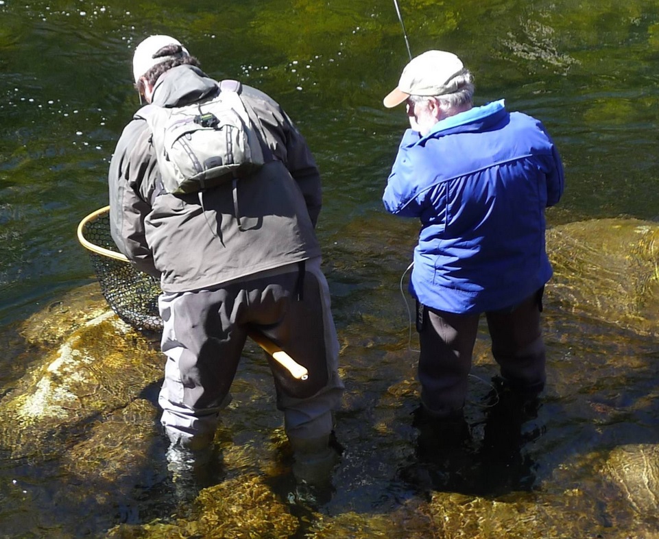 Catch and release: A practice within fly fishing intended as a technique of conservation. Fish should be fought quickly and never allowed to tire to the point of exhaustion to prevent injury or death. After capture, the fish is unhooked using wet hands ‘ or no touching if possible ‘ and forceps and returned to the water as quickly as possible. If necessary, resuscitate by pointing the fish’s head upstream into the current and waiting until it swims off under its own power.