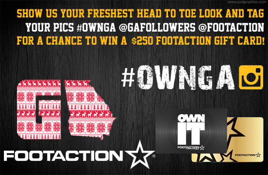 As a gift to our loyal followers, we have teamed up with the lovely people at Footaction to provide 2 lucky Georgians with a $250 gift card for the holiday season. This is your opportunity to show off your style to the rest of the state! You MUST be following Footaction on Instagram & Twitter (links below) and tag ALL entries on Instagram with “#OwnGA @Footaction @GAFollowers“. The contest ends this Sunday, December 21st! View the full rules and how to enter here! Good luck and may the freshest win!